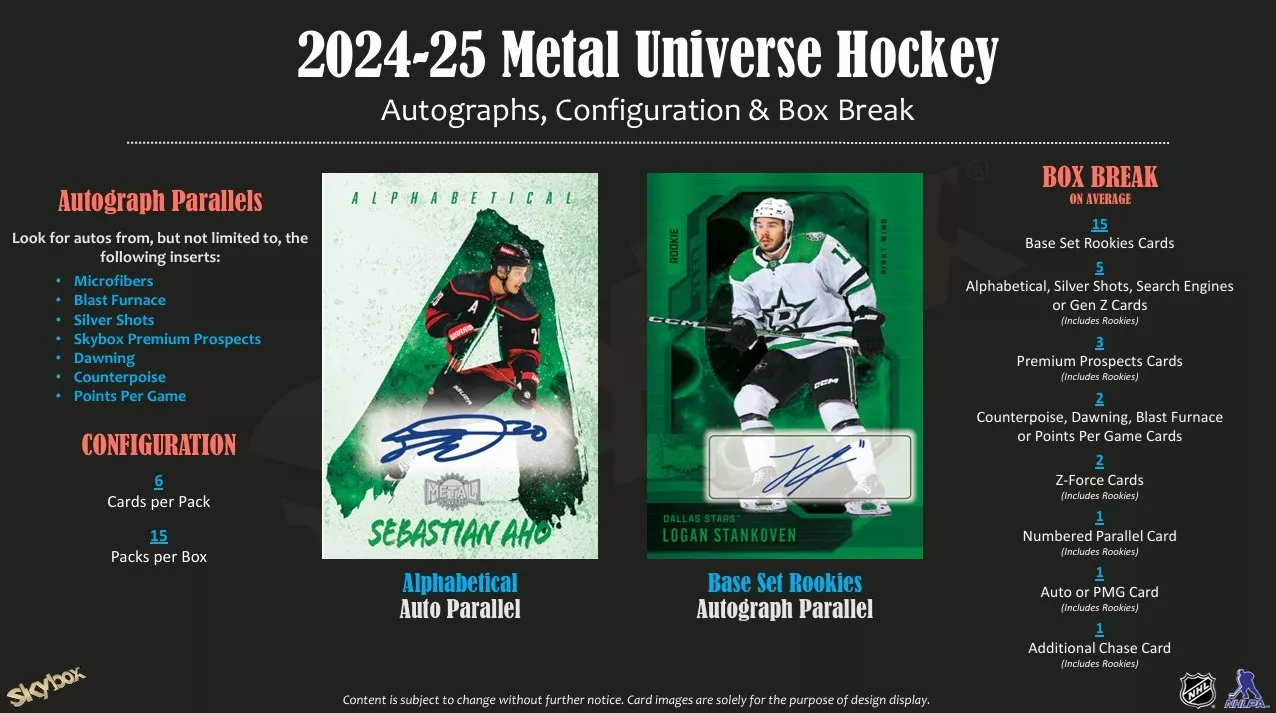 All-new inserts! The 2024-25 edition of Skybox Metal Universe Hockey is packed with new content!