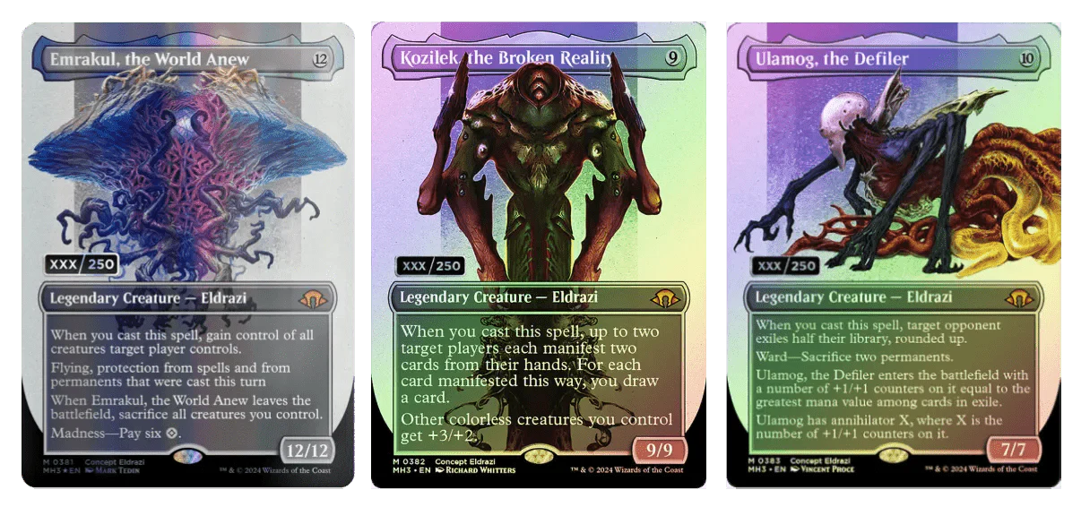 GALI BŪTI MENO KARTŲ, ŽAIDIMŲ PAKUOČIŲ IŠSKIRTINYBĖ - dabar jos yra tik ŽAIDIMŲ PAKUOTĖSE, o kai kuriose pakuotėse taip pat yra meno kortelė, kurioje vaizduojamas meno kūrinys iš rinkinio "Modern Horizons 3", kartais su dailininko parašu ant folijos.